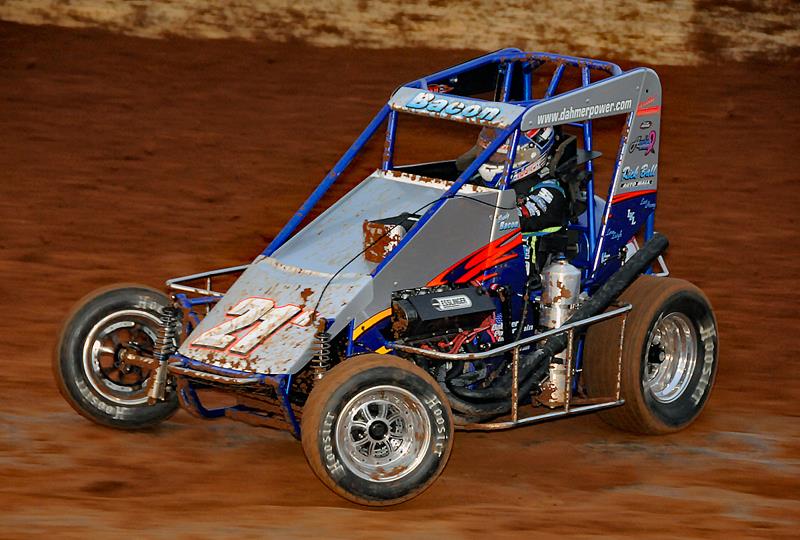 Bacon began the four-night set in the Sooner State by racing to a 12th-place finish in the POWRi National Midget feature at Creek County Speedway before improving to a ninth-place run on the first of two nights at Oklahoma City’s I-44 Riverside Speedway.